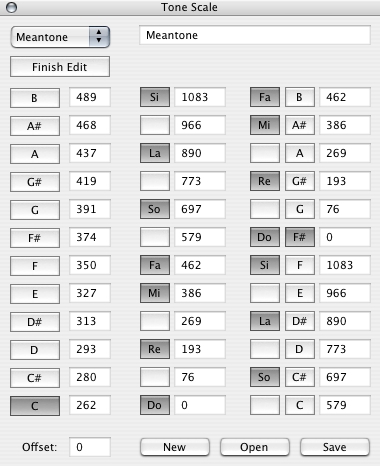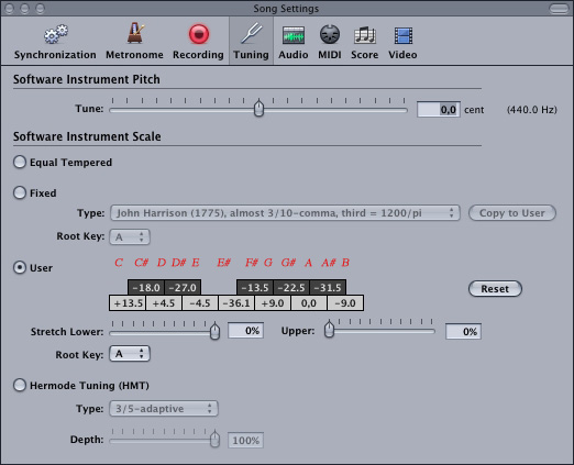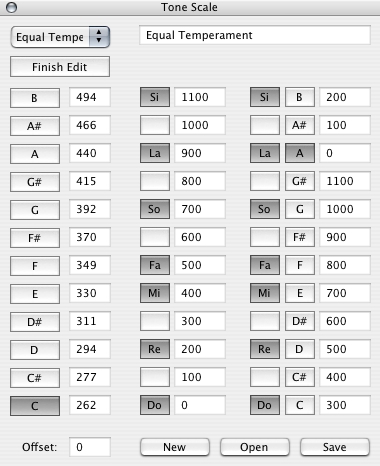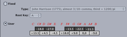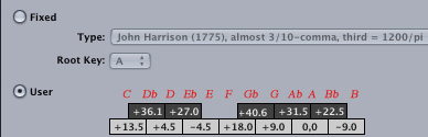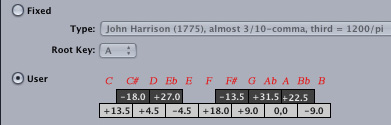 instruments. Values are set in + or - cents for the twelve